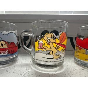 Vintage Set of 4 1978 McDonalds Garfield Odie Glass Coffee Mugs Cups Jim Davis