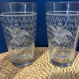 Fantastic Set of 4 beer glasses embellished with the Anheuser Busch letter A and the eagle logo.