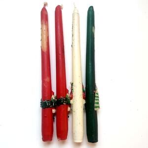 🎅 Vintage Set of 4 Christmas Molded Taper Candles – Mid-Century Holiday Decor