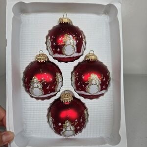 Vintage Set of 4 Christmas by Krebs Red and Gold Snow Man Glitter Glass Ornament