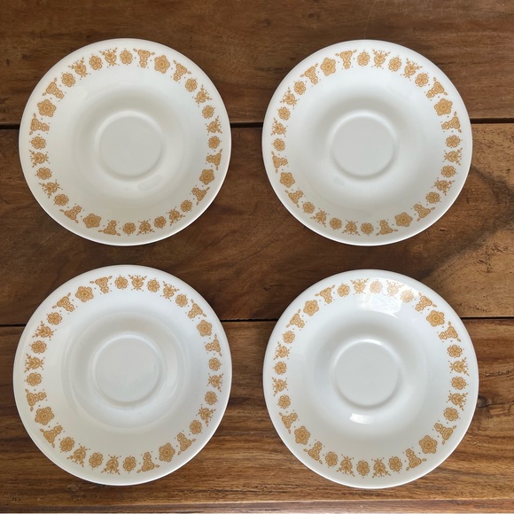 Vintage Set of 4 Corelle Gold Butterfly Patterned Saucer Plates