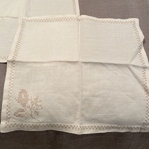 Very nice set of 4 vintage linen napkins with cross stitch detailing, they look in excellent condition, I see no stains or discoloration. 14x14