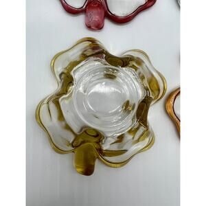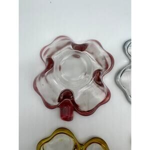 Vintage Set of 4 MCM Glass Four Leaf Clover Trinket Dish or Bridge Bowl