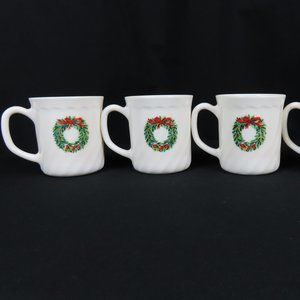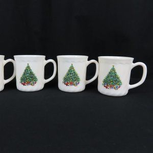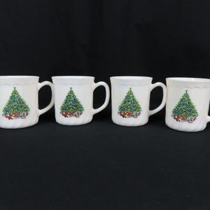 Vintage Set of 4 Salem Porcelle France Milk Glass Christmas Mugs