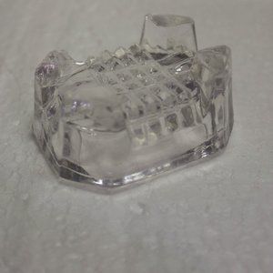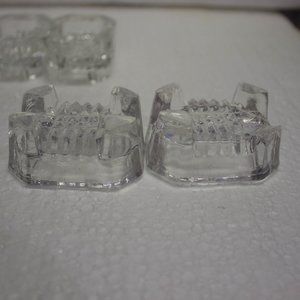 This is a set of four vintage crystal legged salt cellars. These salt cellars measure 1 5/8 x 2 inches. They are about an inch tall. One of the four salt cellars has a broken leg. I attempted to show in the images the broken leg. So there is one three legged salt cellar. Please see images and ask any questions you may have.