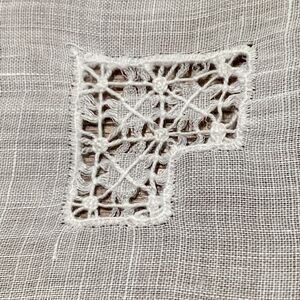 Vintage Set of 4 Sheer White Fine Linen Cocktail Napkins Cutwork Detail Handwork
