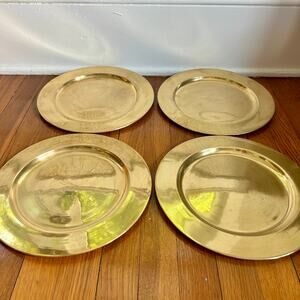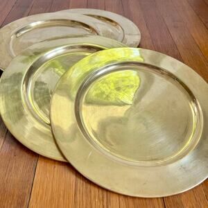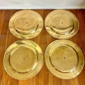 Vintage Set of 4 Solid Brass Charger Plates – 11.75” – Made in India