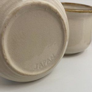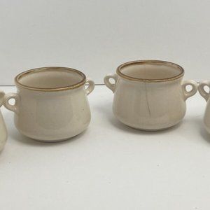 Vintage Set of 4 Soup Kettle Root Vegetable Brown Trim 16oz Mini Crocks