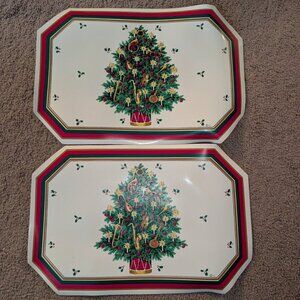 Vintage Set of 4 Town & Country Linen Vinyl Padded Christmas Tree Retro Placemat