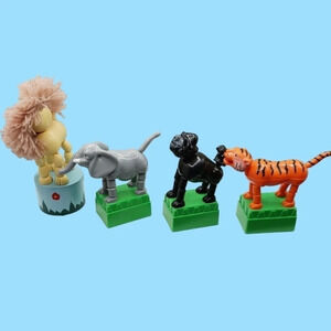 Set of 4 push button puppet plastic collapsible toys includes lion,tiger,elephant,gorilla in great condition from smoke and pet free home.025