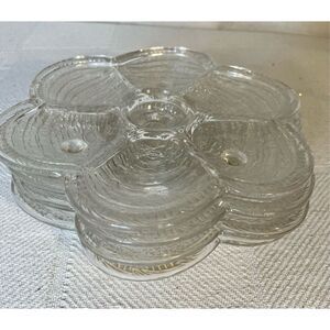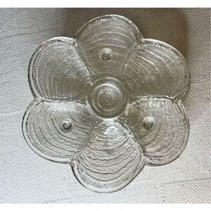 Vintage Set of 4 Glass Footed Oyster Plates – Serving Plates – Kitchen Décor