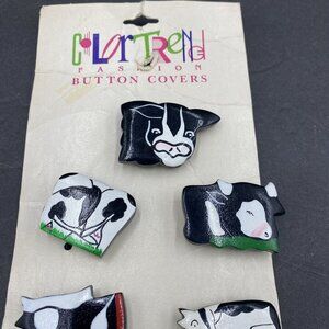 Add some quirky charm to your shirt or blouse with this vintage set of 6 cow button covers. Each button cover has a unique design featuring a black and white, cow . These novelty button covers are perfect for those who love to add a touch of personality to their outfits.