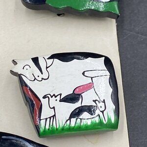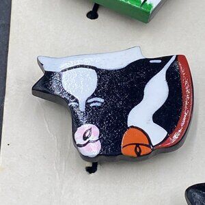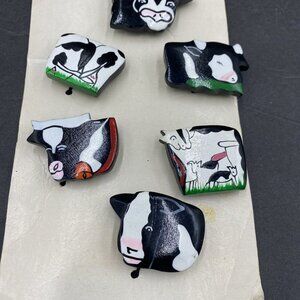 Vintage Set of 6 Cow Button Covers Black White Pink Wood NEW Funny