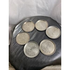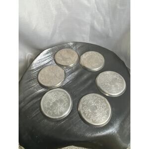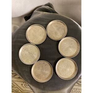 Vintage Set of 6 Forged Aluminum Round Drink Coasters fruit floral pattern EUC