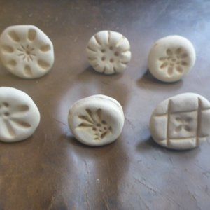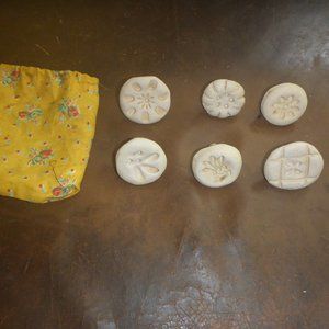 Vintage Set of 6 Handmade Clay Cookie Press Molds - Very Unique!