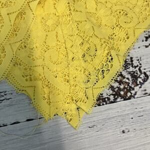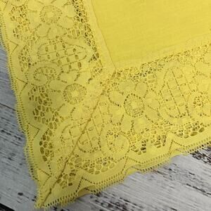 Vintage Set of 6 Linen Dinner Table Napkins Canary Yellow Square Linen Lace