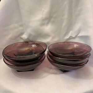 Vintage Set of 6 Square Base Amethyst Glass Salad Bowls