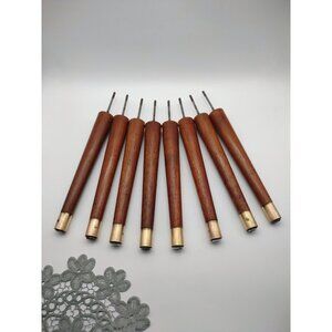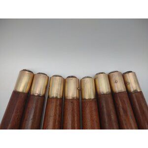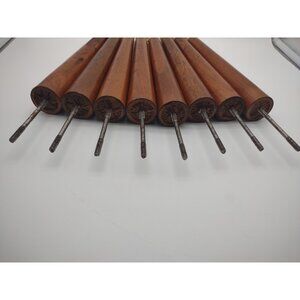 Vintage Set of 8 Mid Century Modern 14.75" Wooden Tapered Coffee or Side Table Legs. Brass metal taps on end of each.