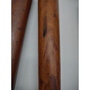 2) Slice of wood is missing on one leg - see 11th and 12th photos for reference - does not affect function.