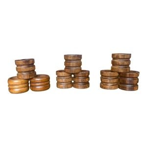 Vintage Set of 9 Hand-Carved Wooden NAPKIN RINGS Made in India
