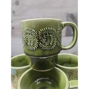 Vintage Set of Four Ceramic MCM Stackable Green Mugs Set Made in Japan