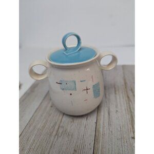Charming vintage Vernonware Metlox "Heavenly Days" sugar dish and creamer set. Mid-century modern (MCM) design with classic details, perfect for collectors or everyday use in your kitchen.