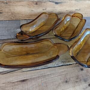 Vintage Set of four Amber Glass Indiana Glass Banana Split boats