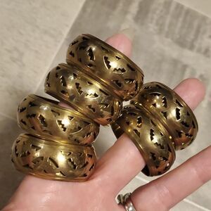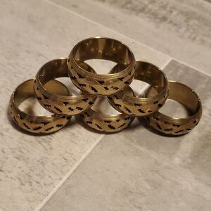 Vintage Set of 6 Brass Napkin Rings, no flaws and fun unique set.