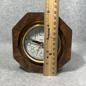Vintage Seth Thomas Desk Clock Quartz Octagon Wood Brass Trim Tabletop Battery