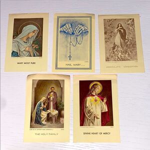 Vintage Set of 5 Religious Prayer Cards The Holy Family Mary Catholic Religion