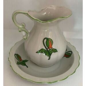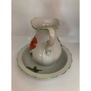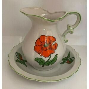 Vintage Seven Seas Bath Kitchen Fashions Flower Retro Pitcher & Bowl