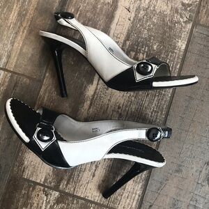 Vintage Marc Seventeen Miles black white pinup slingback peep-toe heels size 7. Like new! 4” heel.