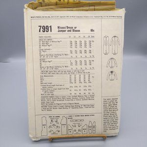Vintage Sewing PATTERN McCalls 7991, Misses 1965 Dress or Jumper and Blouse