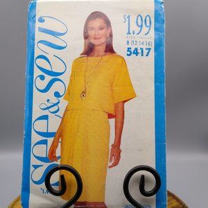 Vintage Sewing PATTERN See and Sew 5417, Butterick 1991 Misses Top and Skirt