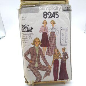 Vintage Sewing PATTERN Simplicity 8245, Go Everywhere 1977 Blouse Pants Skirt in Two Lengths and Jacket, Size 12