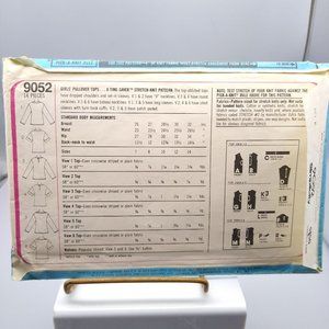 Vintage Sewing PATTERN Simplicity 9052, Girls 1979 Pullover Tops, Child Size K