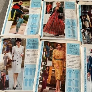 Collection of vintage sewing patterns. Includes various dress and skirt designs. Perfect for fashion enthusiasts. With binders included