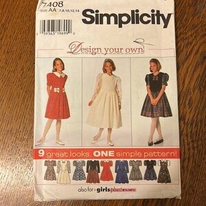 Simplicity 7408 size AA 7,8,10,12,14 girls dress 9 versions