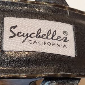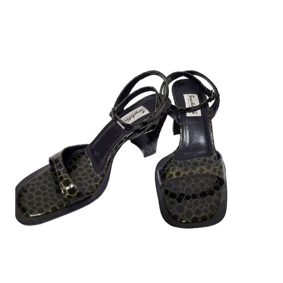 Vintage Seychelles Size 6 M California Block Heels Leather Black Animal Print