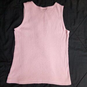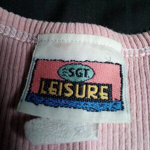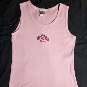 Vintage Sgt. Leisure Maui Flower Embroidered Ribbed Tank Top Shirt - Made in USA - Size Medium, Measures p2p=16" Length=21" - Excellent Condition, No Flaws - Pink Color Shirt