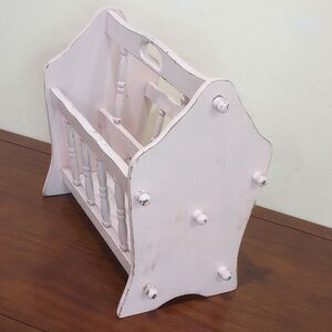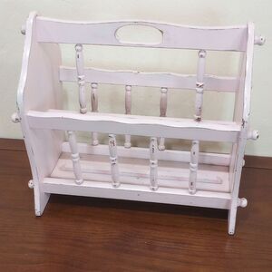 Vintage Shabby Chic Pale Pink French Country Wooden Rustic Magazine & Book Rack