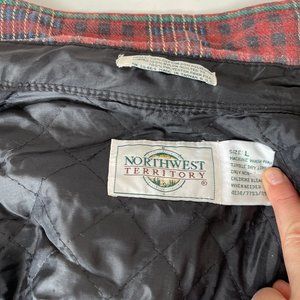Vintage Shacket Red Plaid Flannel Nylon Quilt Lining Northwest Territory Sz Large