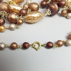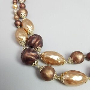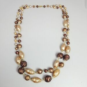 Vintage Shades of Brown Two Strand Long Beaded Necklace 26 Inches Mix Bead Shape