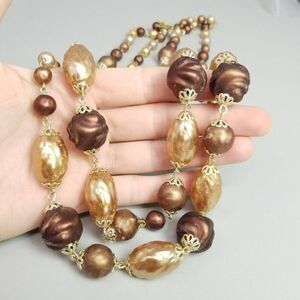 Vintage Shades of Brown Two Strand Long Plastic Beaded Necklace 26 Inches Mix Bead Shape
