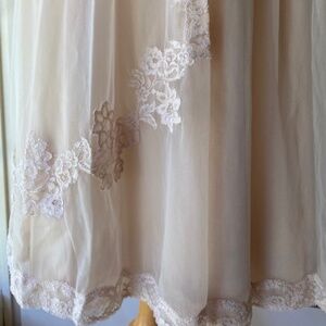 Soft chiffon and nylon with appliqués and lace; waltz length