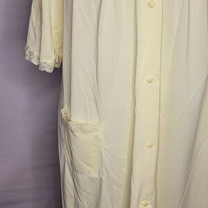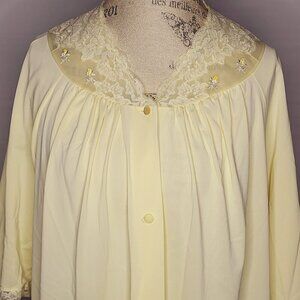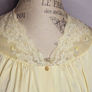 Vintage ShadowLine Robe Women M Yellow Short Sleeve Button Down Lace Trim Pocket