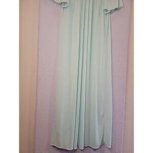 Vintage Shadowline Gown Long Pale Blue Rosette Embroidered Flutter Sleeve Small