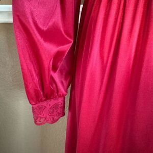 Vintage Shadowline M Satin Gown And Robe Set Deep Red Lace Trim Romantic Evening
