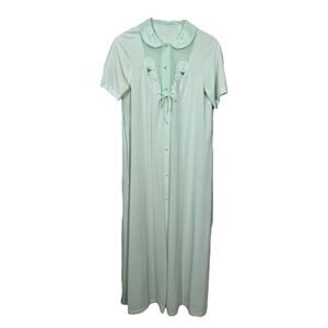 Vintage Shadowline Mint Green Nightgown. Short sleeve. Lace and floral embroidered details. All Nylon.