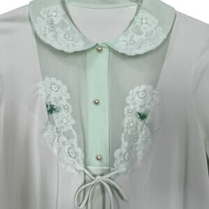 Vintage Shadowline Mint Green Nightgown Small Nylon Lace Floral Robe Sleepwear